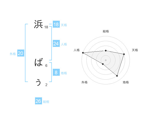 浜 ばぅさんの総格は26画の2点!