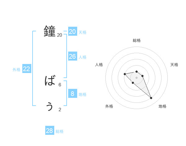 鐘 ばぅさんの外格は22画の1点!