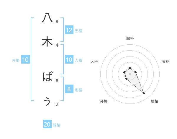八木 ばぅさんの総格は20画の1点!