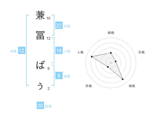 兼冨 ばぅさんの総格は30画の2点!