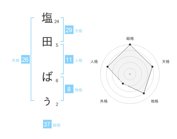 塩田 ばぅさんの総格は37画の5点!