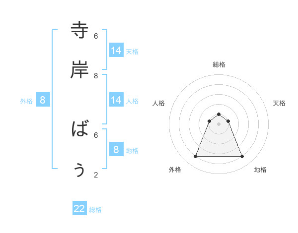 寺岸 ばぅさんの総格は22画の1点!