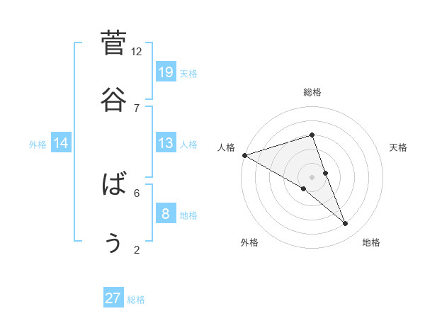 菅谷 ばぅさんの総格は27画の3点!