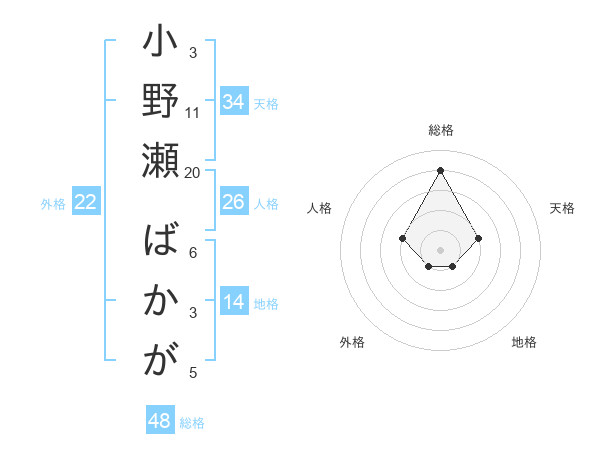 小野瀬 ばかがさんの総格は48画の4点