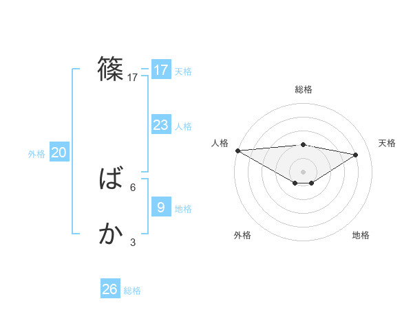 篠 ばかさんの総格は26画の2点!