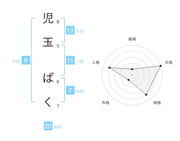児玉 ばくさんを姓名の画数から五運を鑑定