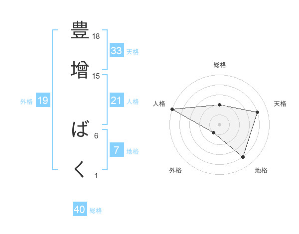 豊增 ばくさんの地格は7画の4点!