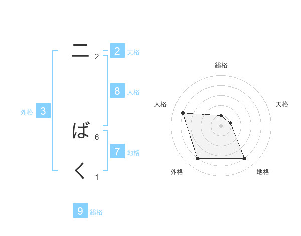 二 ばくさんの総格は9画の1点!