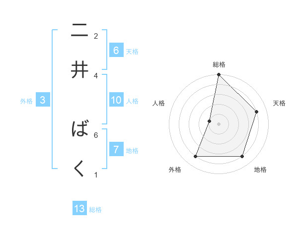 二井 ばくさんの総格は13画の5点!