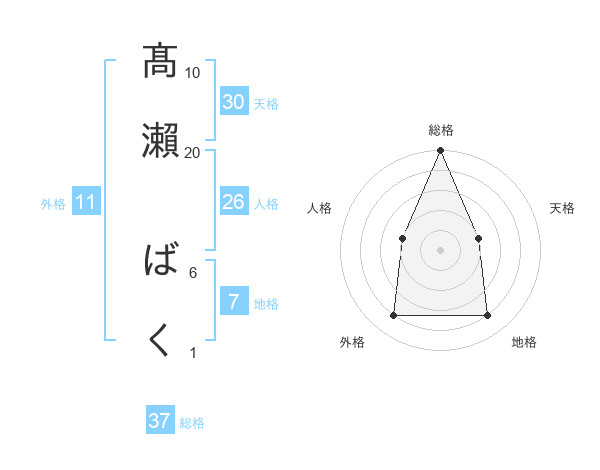 髙瀨 ばくさんを姓名の画数から五運を鑑定