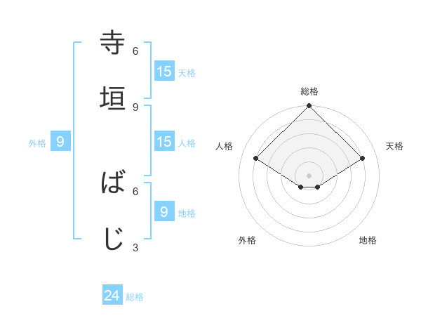 寺垣 ばじさんを姓名の画数から五運を鑑定