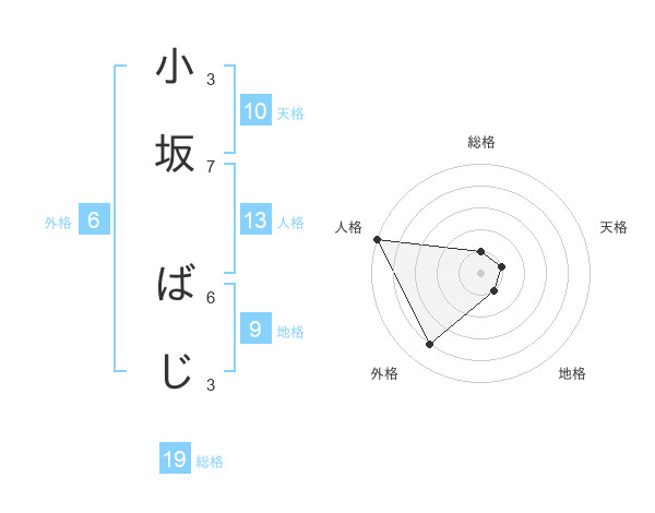 小坂 ばじさんを姓名の画数から五運を鑑定