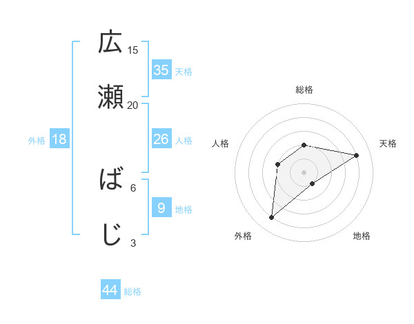 広瀬 ばじさんを姓名の画数から五運を鑑定