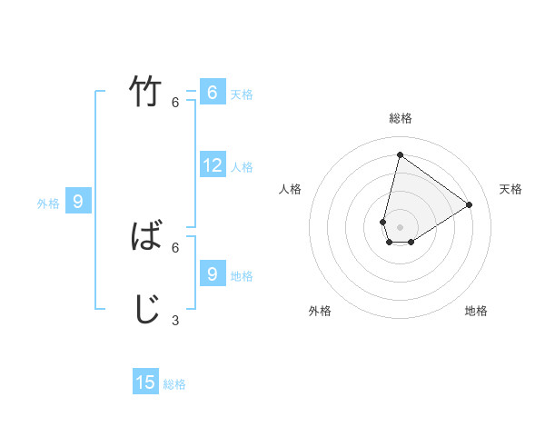 竹 ばじさんの総格は15画の4点!