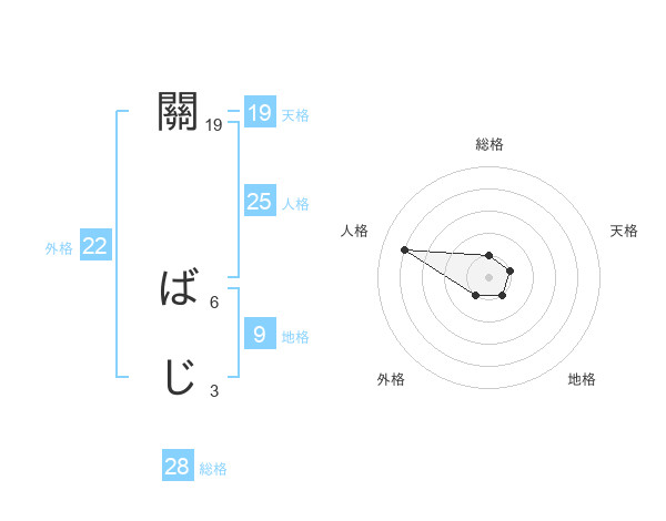 關 ばじさんの総格は28画の1点!