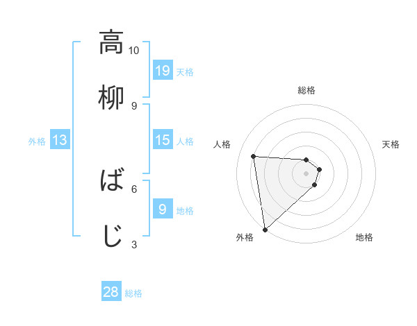高柳 ばじさんの外格は13画の5点!