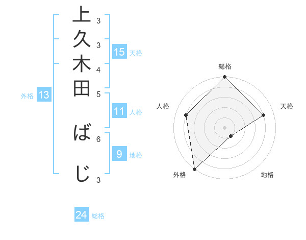 上久木田 ばじさんを姓名の画数から五運を鑑定