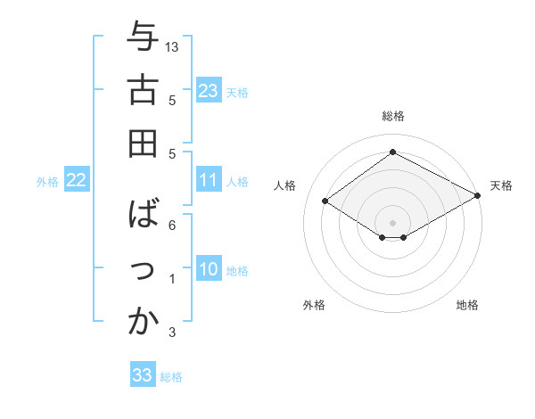 与古田 ばっかさんを姓名の画数から五運を鑑定