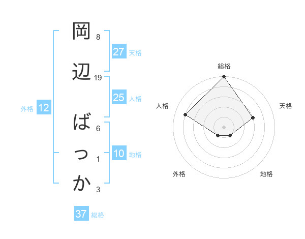 岡辺 ばっかさんの総格は37画の5点!