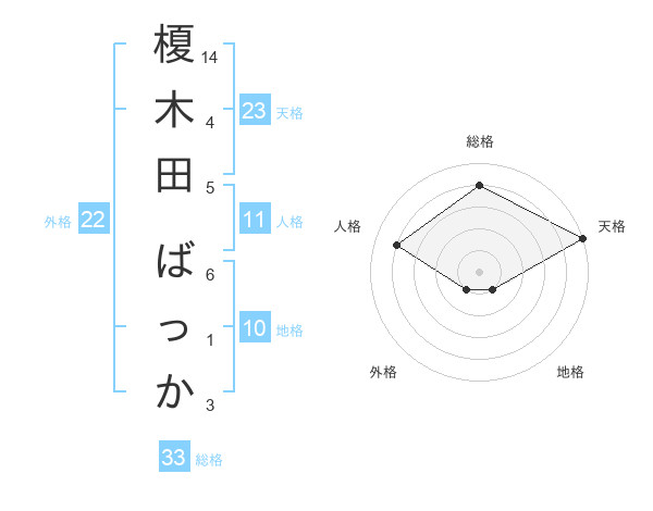榎木田 ばっかさんを姓名の画数から五運を鑑定
