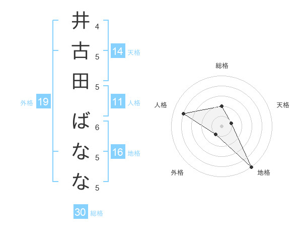 井古田 ばななさんの総格は30画の2点!