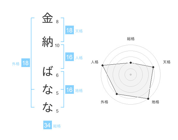金納 ばななさんの総格は34画の2点!
