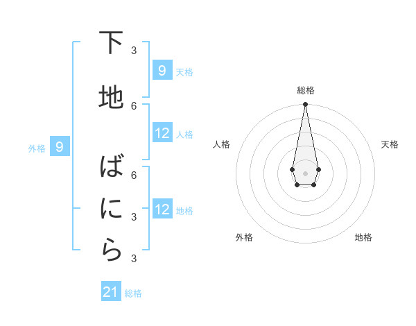 下地 ばにらさんの総格は21画の5点!