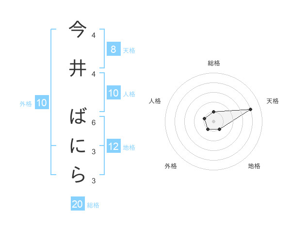 今井 ばにらさんを姓名の画数から五運を鑑定