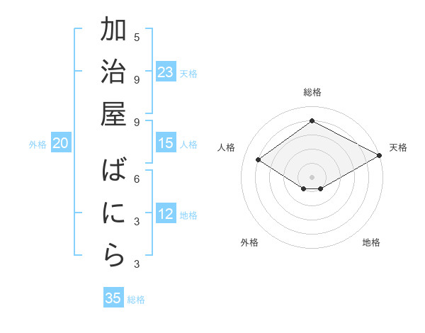 加治屋 ばにらさんを姓名の画数から五運を鑑定
