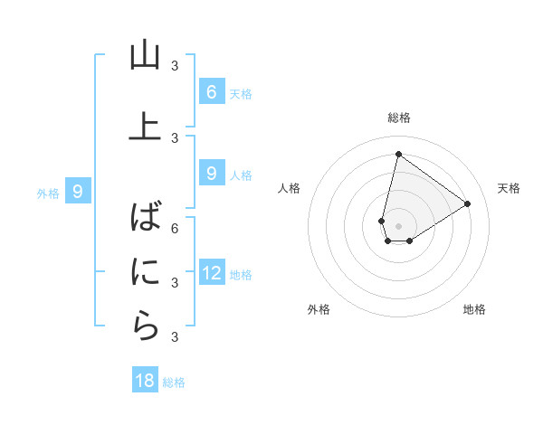 山上 ばにらさんを姓名の画数から五運を鑑定