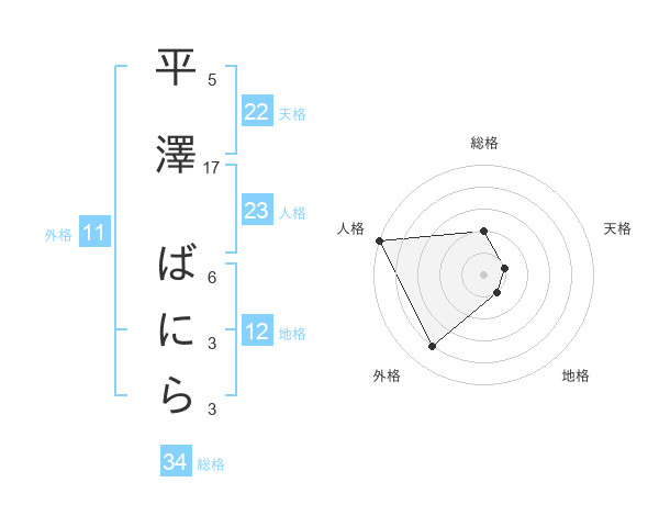 平澤 ばにらさんを姓名の画数から五運を鑑定