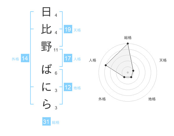 日比野 ばにらさんを姓名の画数から五運を鑑定