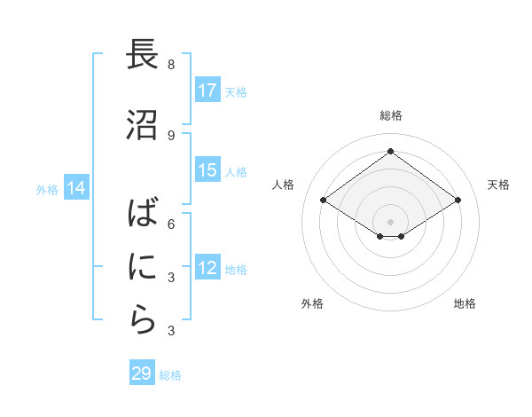 長沼 ばにらさんの天格は17画の4点