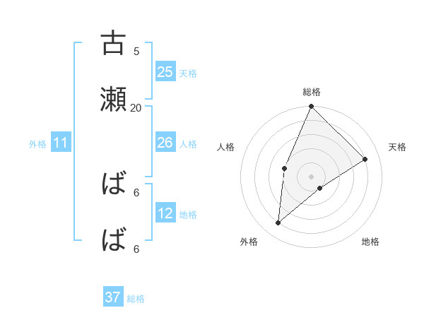 古瀬 ばばさんの総格は37画の5点!