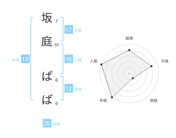 坂庭 ばばさんの外格は13画の5点!