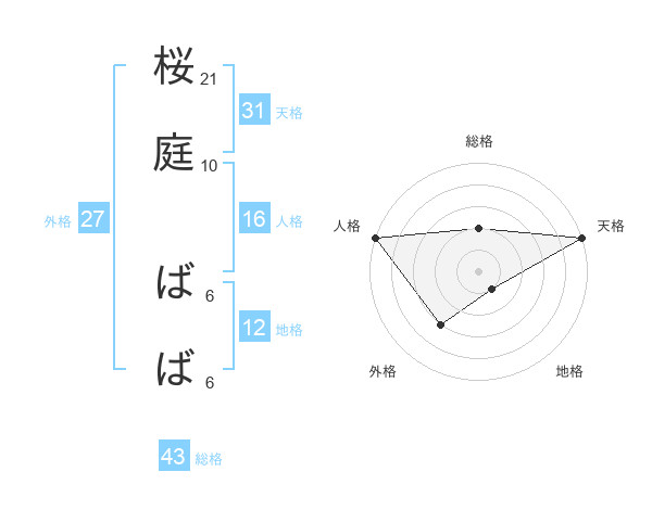 桜庭 ばばさんの天格は31画の5点!