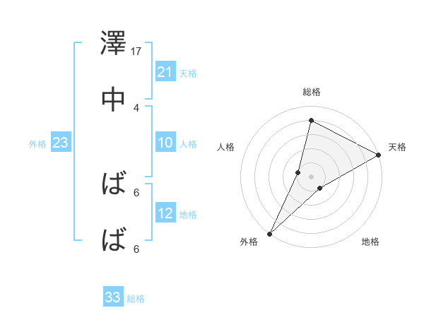 澤中 ばばさんを姓名の画数から五運を鑑定