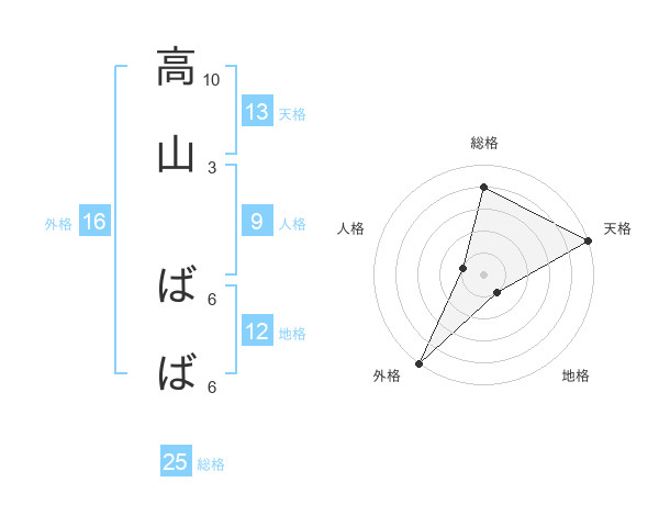 高山 ばばさんの天格は13画の5点!