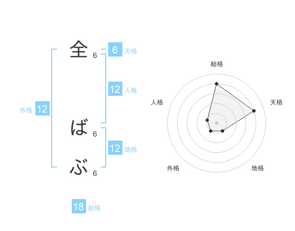 全 ばぶさんの総格は18画の4点!