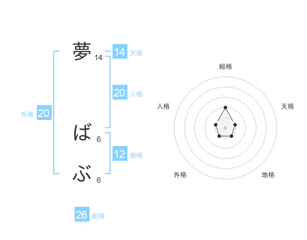 夢 ばぶさんの総格は26画の2点!