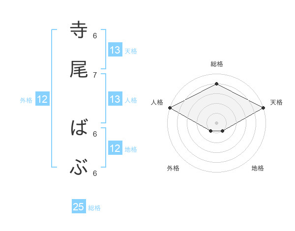 寺尾 ばぶさんの天格は13画の5点!