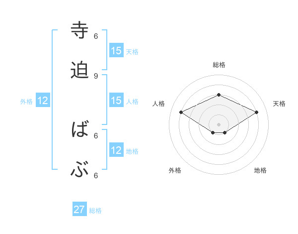 寺迫 ばぶさんを姓名の画数から五運を鑑定