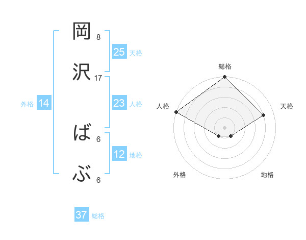 岡沢 ばぶさんの天格は25画の4点!