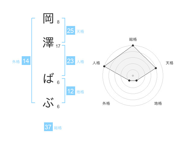 岡澤 ばぶさんを姓名の画数から五運を鑑定