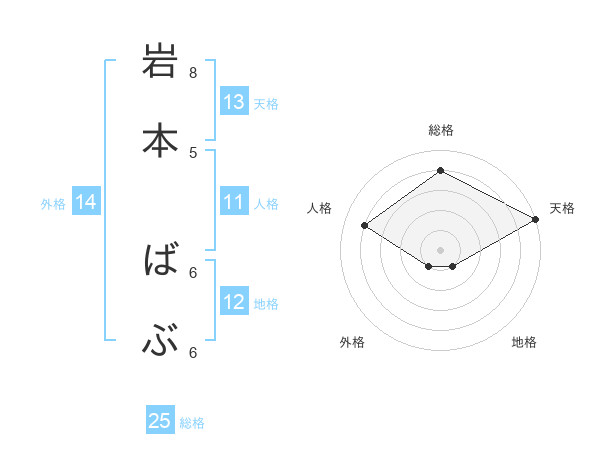 岩本 ばぶさんの天格は13画の5点!