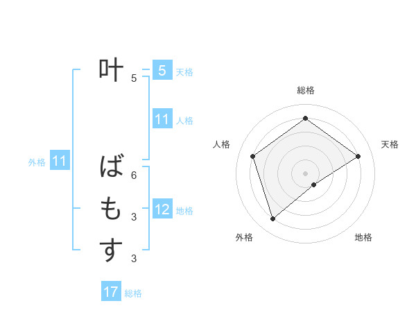 叶 ばもすさんの総格は17画の4点!