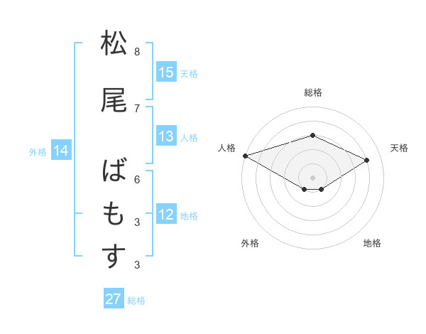 松尾 ばもすさんを姓名の画数から五運を鑑定