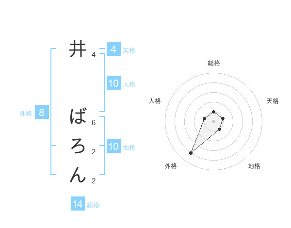 井 ばろんさんの総格は14画の1点!