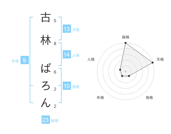 古林 ばろんさんの総格は23画の5点!