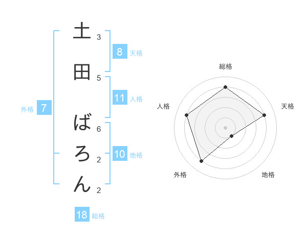 土田 ばろんさんの総格は18画の4点